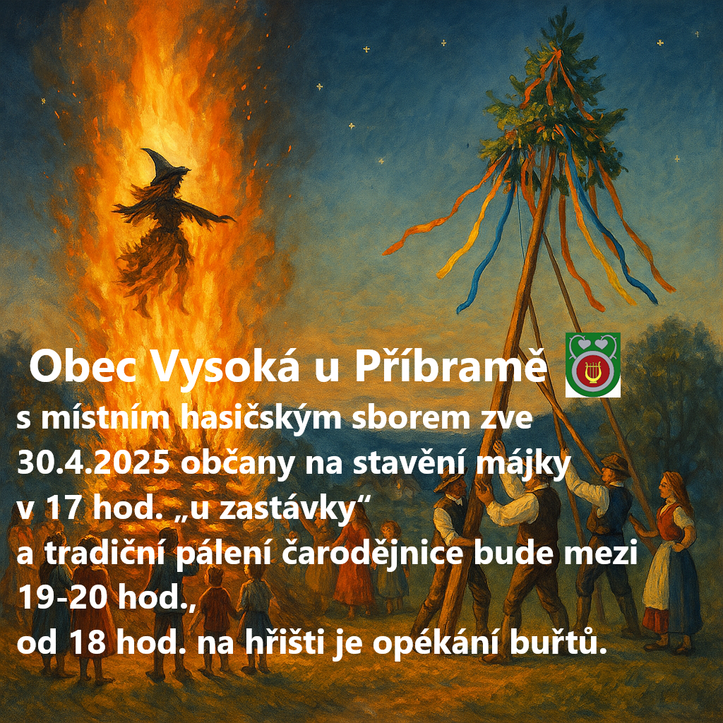 Dne 30. dubna 2025 se uskuteční tradiční pálení čarodějnic, na které jsou zváni všichni občané. Akce začne již v 17 hodin na zastávce, kde se sejdou účastníci. Od 18 hodin bude probíhat opékání buřtů na hřišti a samotné pálení čarodějnic je naplánováno mezi 19. a 20. hodinou.